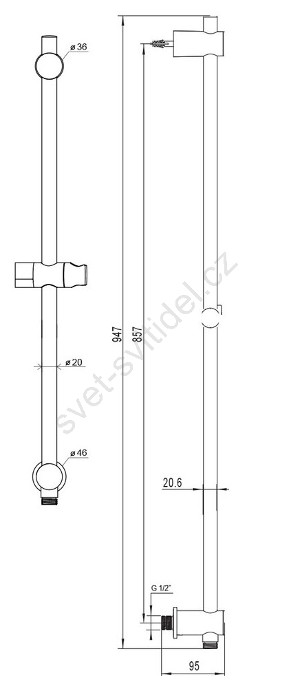 • Podomítkový vývod vody přímo v tyči s G1/2" závitem vnějším.