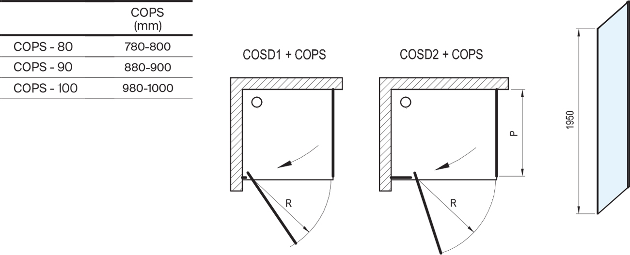 • Rozměr stěny činí 90 cm a výška 195 cm, což zajišťuje dostatečné krytí a stabilitu.