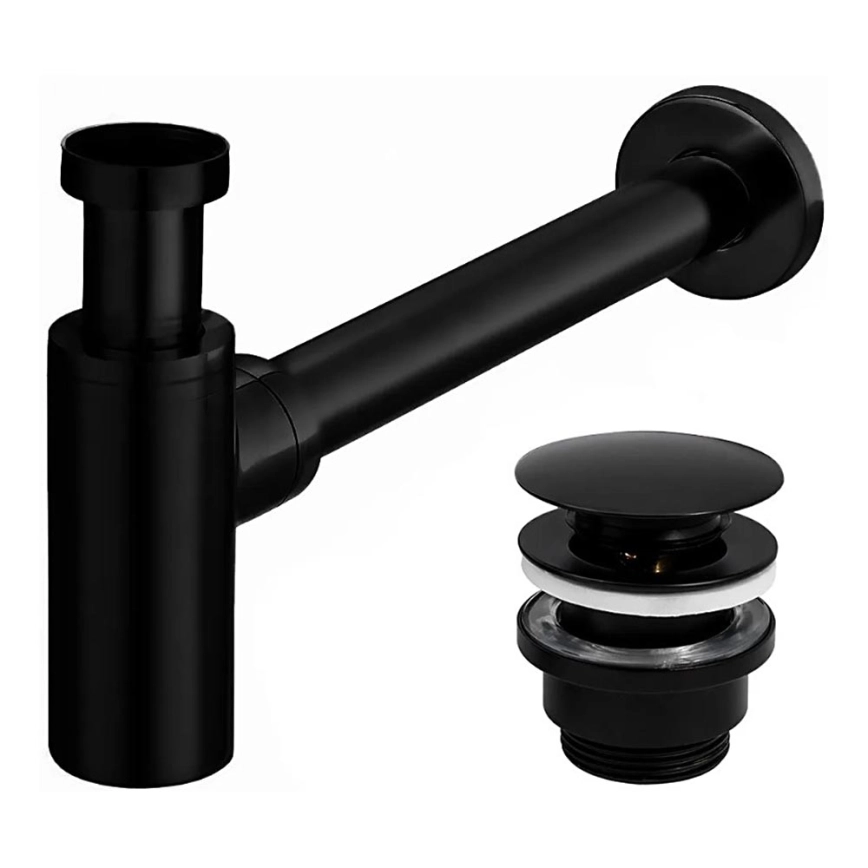 REA-A5215 - Umyvadlový sifon s výpustí CLICK-CLACK pr. 6,4 cm matná černá