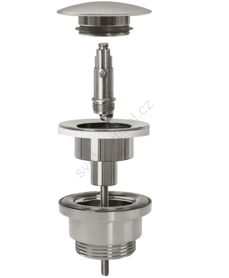 • Mechanismus, který umožňuje snadné otevírání a zavírání odtoku umyvadla pouhým stisknutím zátky.
