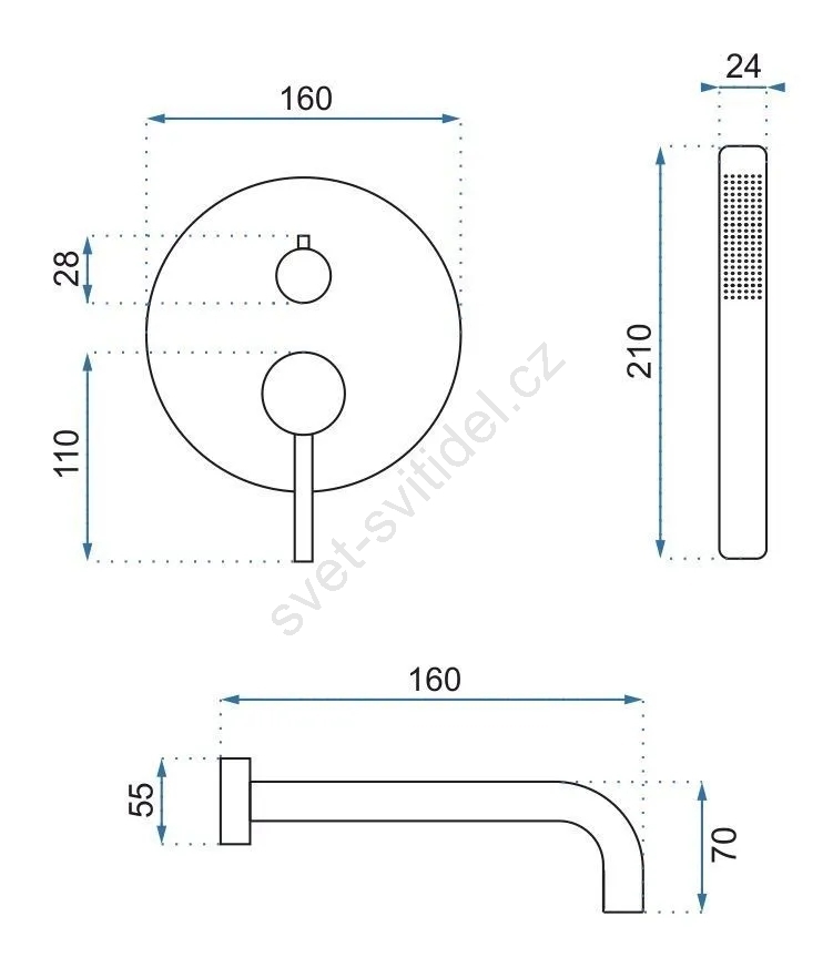 • Sada obsahuje: vanovou baterii, nástěnnou výpusť, ruční sprchu, sprchovou hadici (160 mm), držák ruční sprchy.