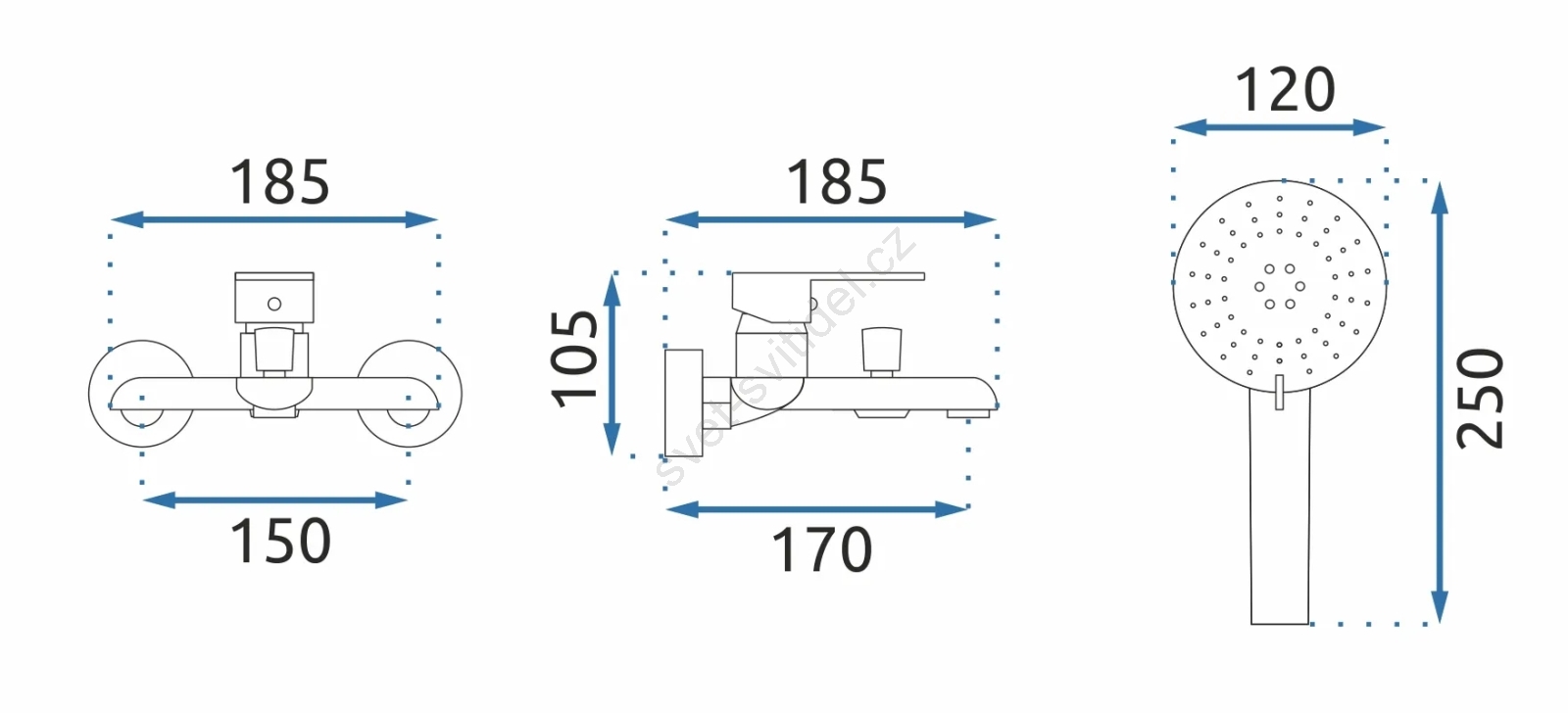 • Sada obsahuje: vanovou baterii, ruční sprchu, sprchovou hadici (150 mm), držák ruční sprchy.