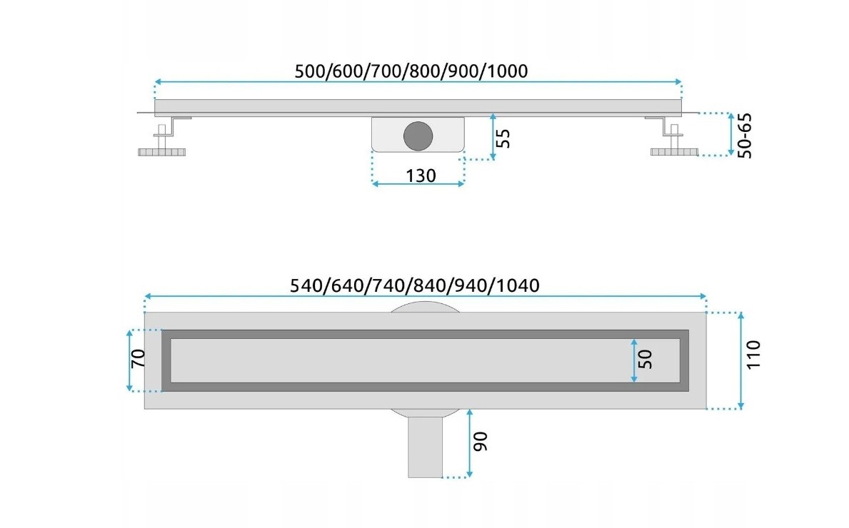 • Díky výškově nastavitelným nožkám (50–65 mm) lze odtok snadno přizpůsobit různým podlahovým podmínkám.
