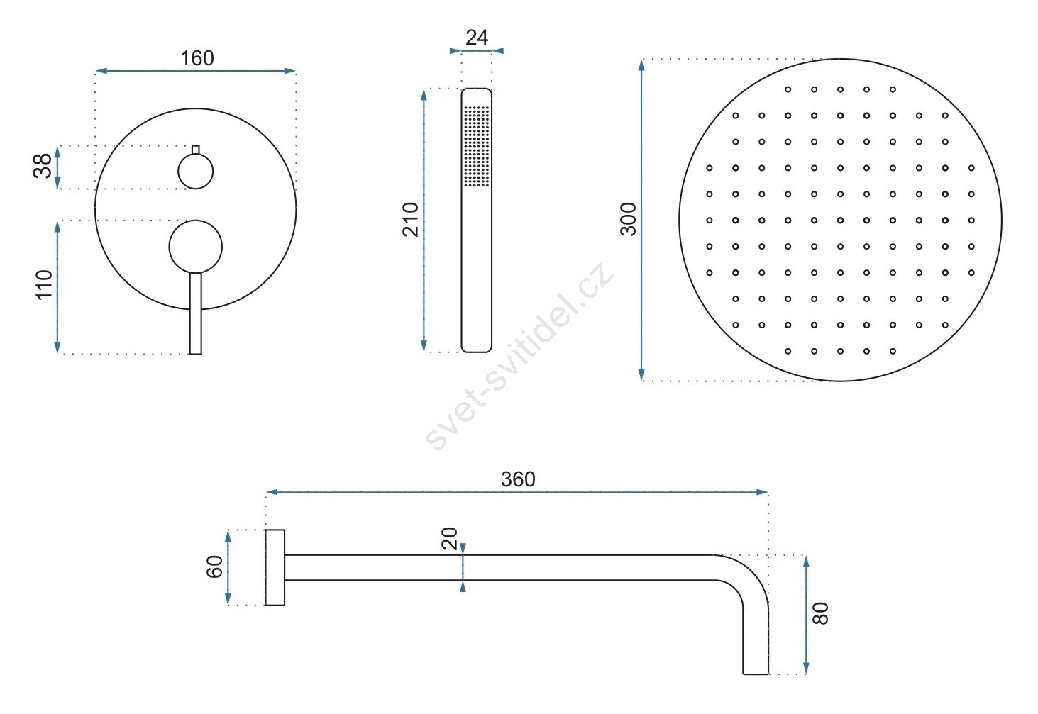 • Balení obsahuje: podomítkový box, kompletní baterie, rameno, ruční a hlavová sprcha, držák ruční sprchy, 150cm hadice.