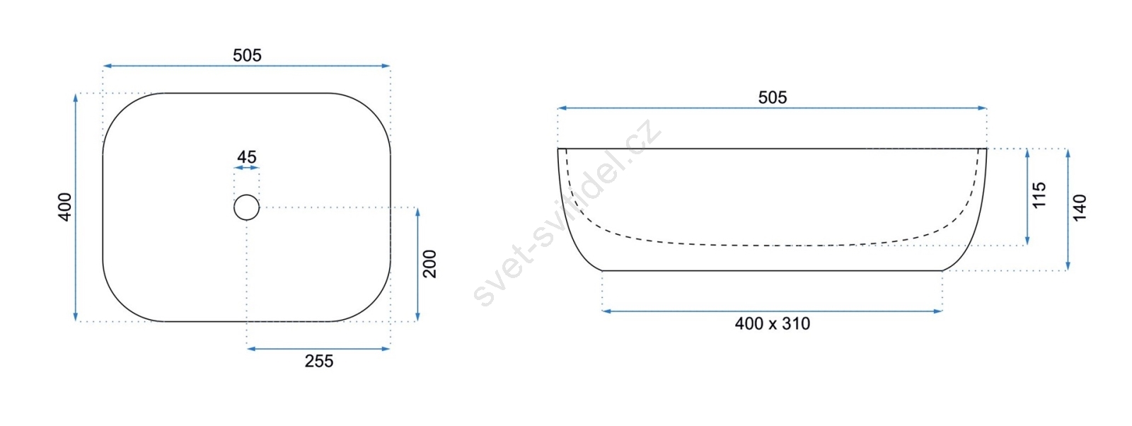 • Moderní a elegantní umyvadlo bez přepadu.