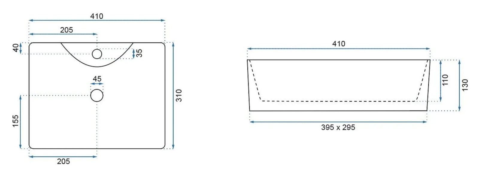 • Moderní a elegantní umyvadlo bez přepadu.