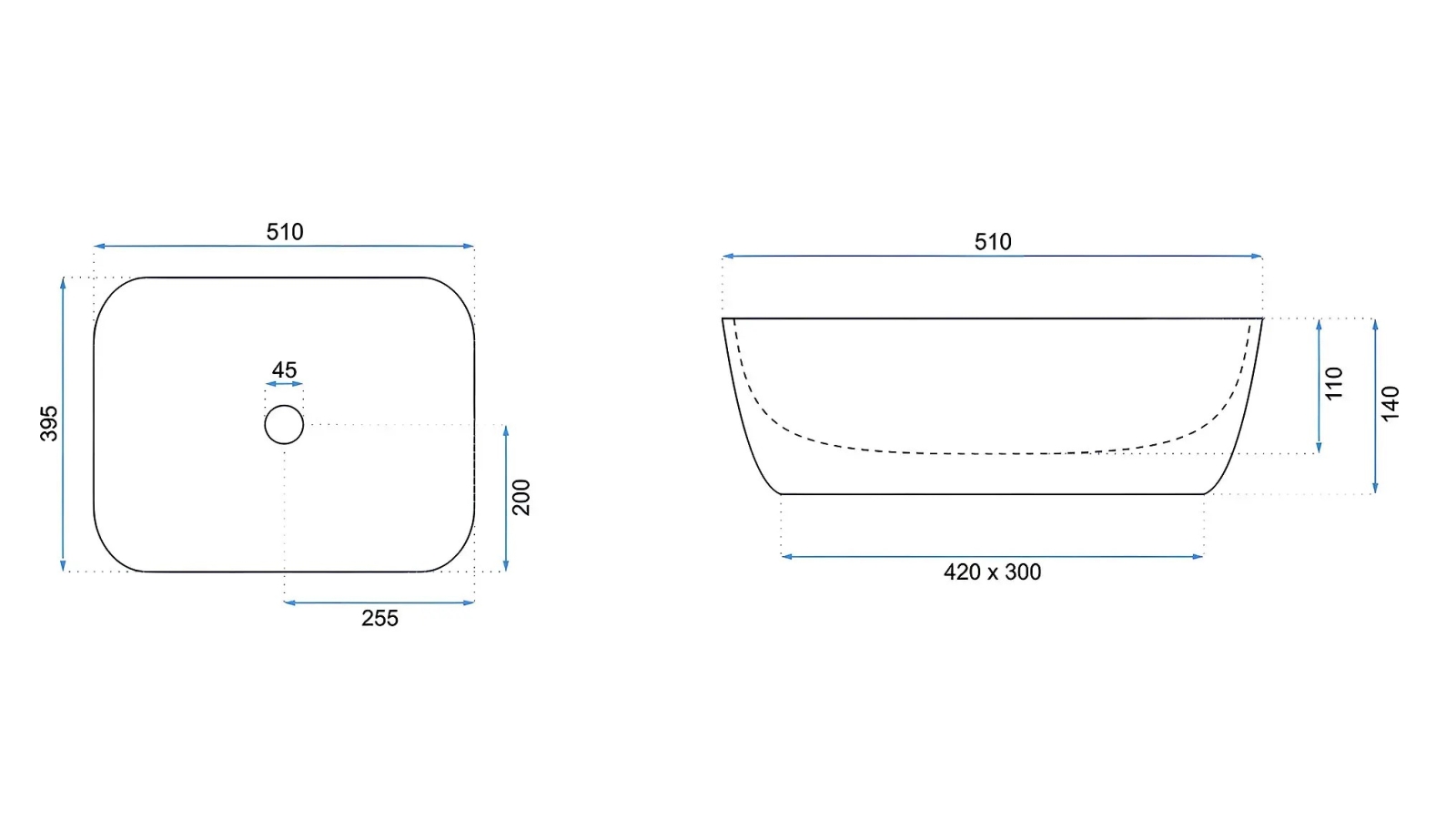 • Moderní a elegantní umyvadlo bez přepadu.