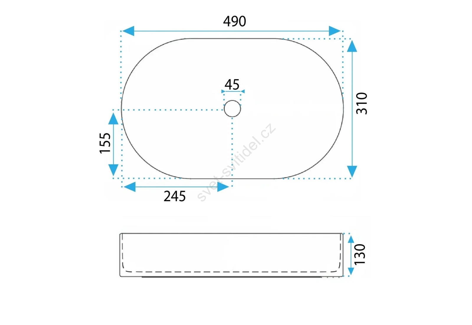 • REA-U6375 - Umyvadlo na desku VANDA 31x49 cm keramika/matná modrá