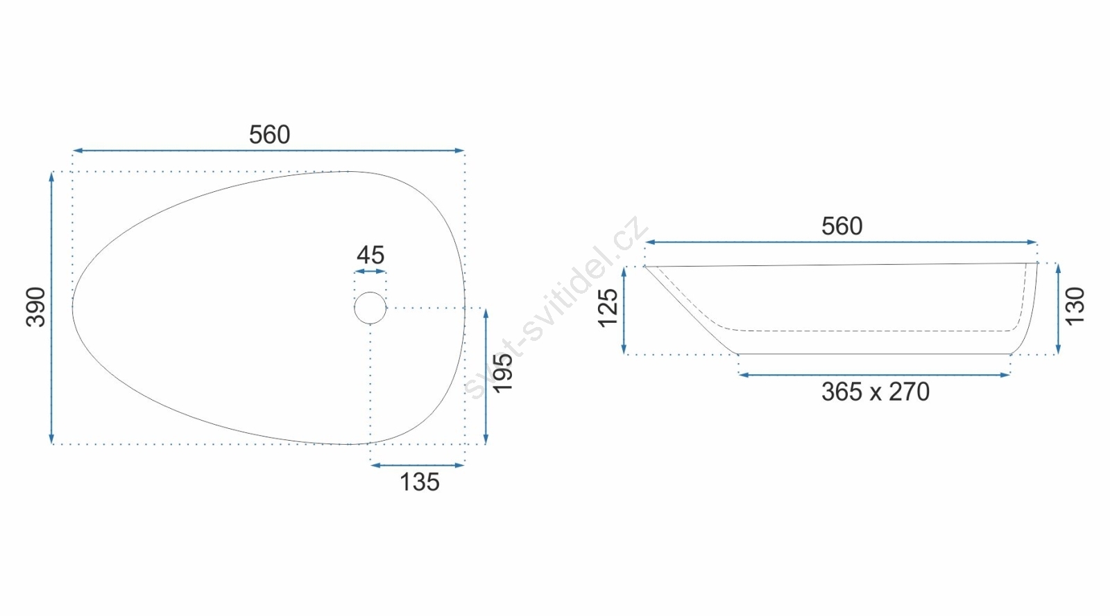 • Moderní a elegantní umyvadlo bez přepadu.