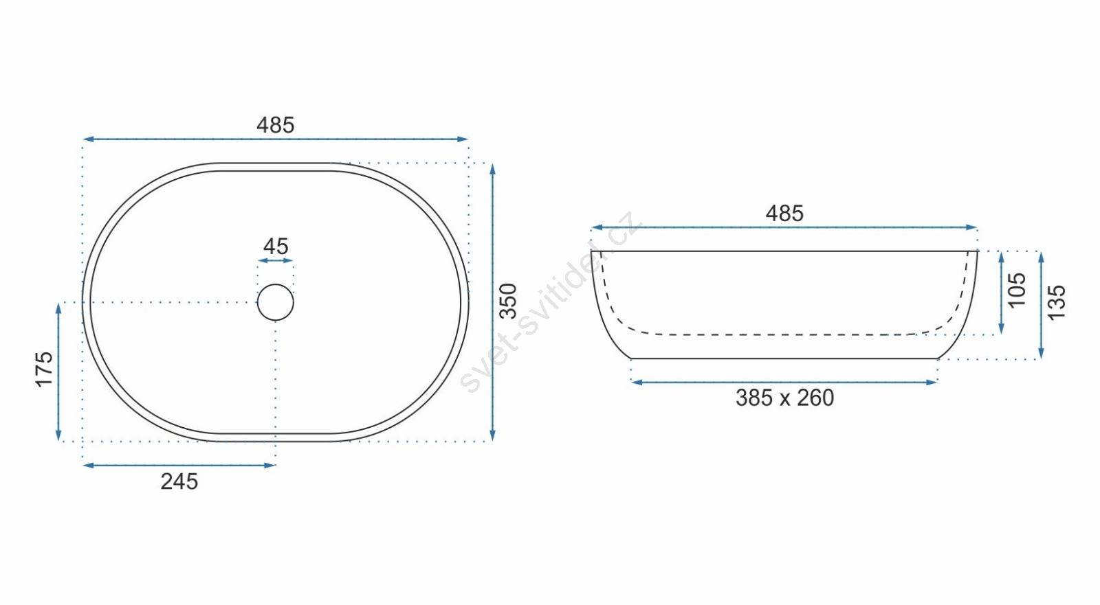 REA-U9888 - Umyvadlo na desku LARA 35x48,5 cm keramika/imitace kamene