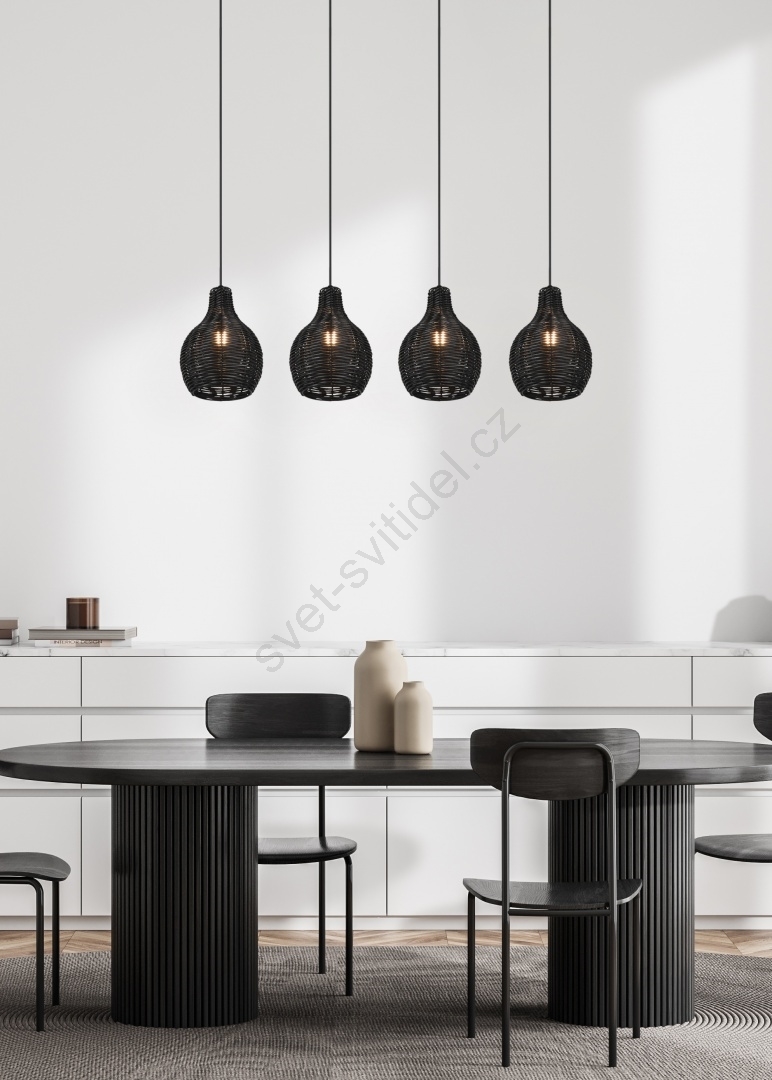 Reality - Lustr na lanku SPROUT 4xE14/30W/230V černá/ratan charakterizuje pěkný design a funkční provedení. Do svítidla je určena žárovka s paticí E14. Zde si můžete koupit další žárovky za výhodnou cenu. Získáte tak zajímavý doplněk do svého domova.