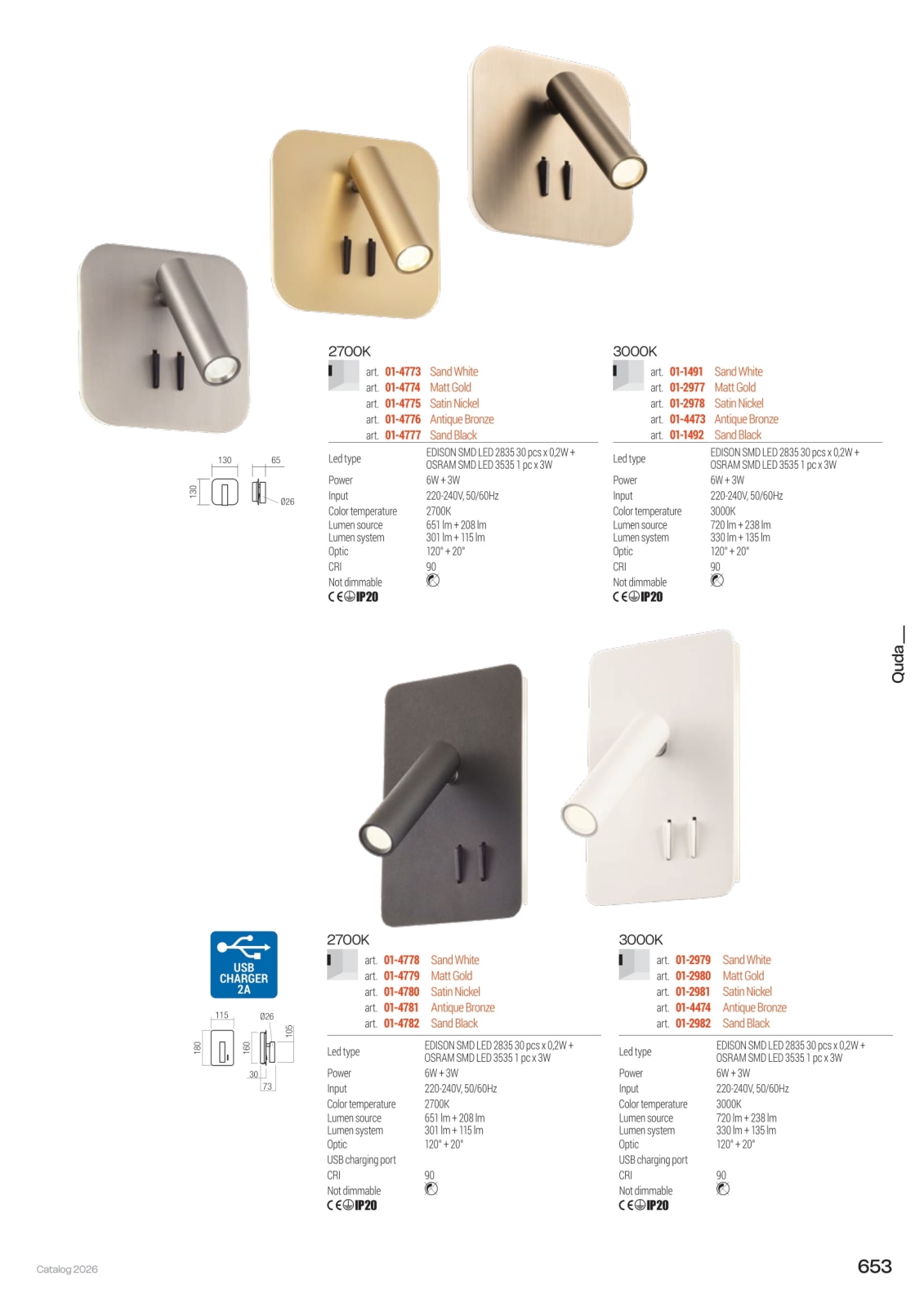 • Redo 01-1491 - LED Nástěnné svítidlo QUDA LED/6W/230V + LED/3W CRI 90 bílá
