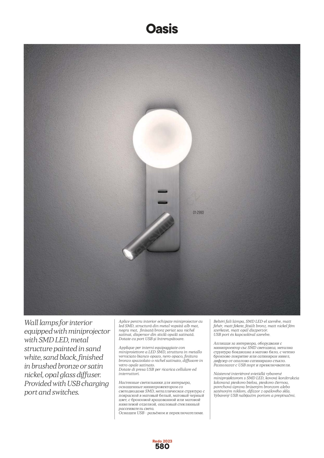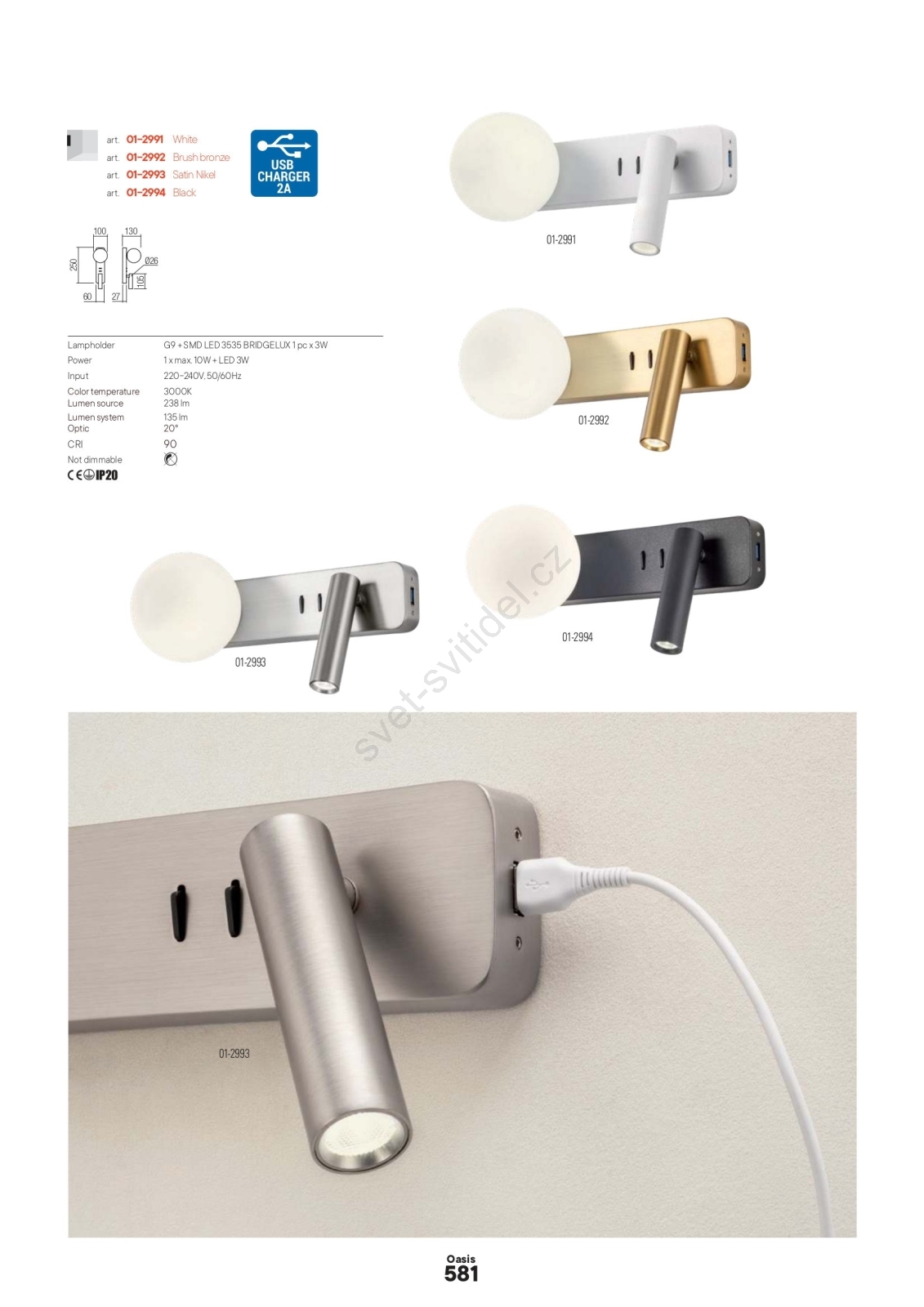 • Redo 01-2991 - LED Nástěnné svítidlo OASIS LED/3W/230V + 1xG9/10W USB CRI 90 bílá