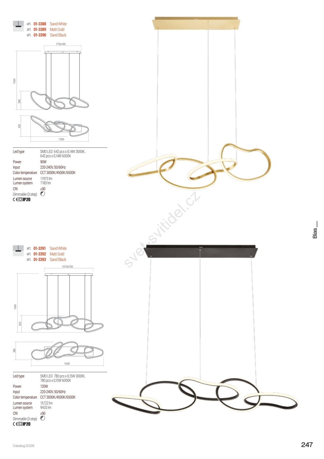 • Redo 01-3389 - LED Stmívatelný lustr na lanku BIAS LED/90W/230V 3000/4500/6500K CRI 90 zlatá