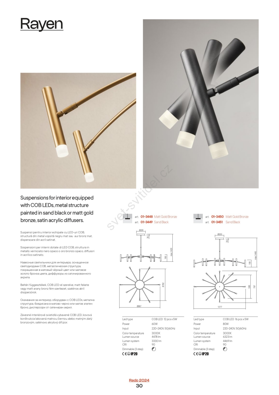 Redo 01-3450 - LED Stmívatelný lustr na tyči RAYEN LED/80W/230V CRI 90 zlatá