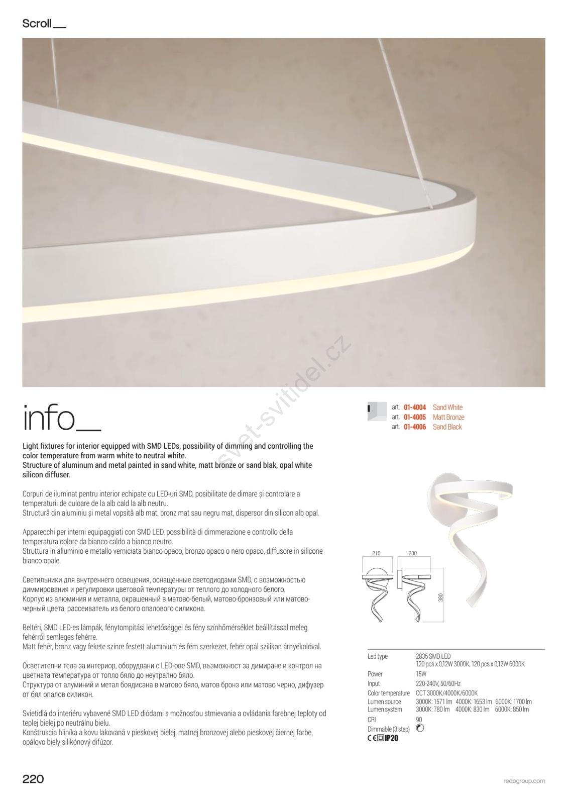 • Redo 01-4013 - LED Stmívatelný lustr na lanku SCROLL LED/38W/230V 3000K/4000K/6000K CRI 90 pr. 60 cm bílá