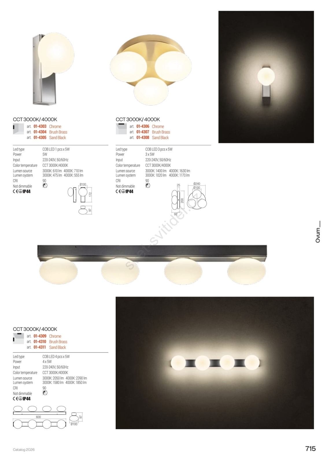 • Redo 01-4310 - LED Koupelnové stropní svítidlo OVUM 4xLED/5W/230V 3000/4000K CRI 90 IP44 bílá/mosaz