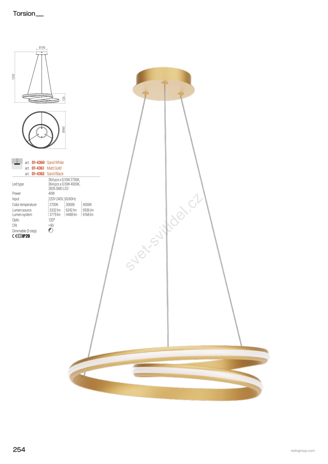 • Redo 01-4361 - LED Stmívatelný lustr na lanku TORSION LED/40W/230V 2700/3000/4000K CRI 90 pr. 56 cm zlatá