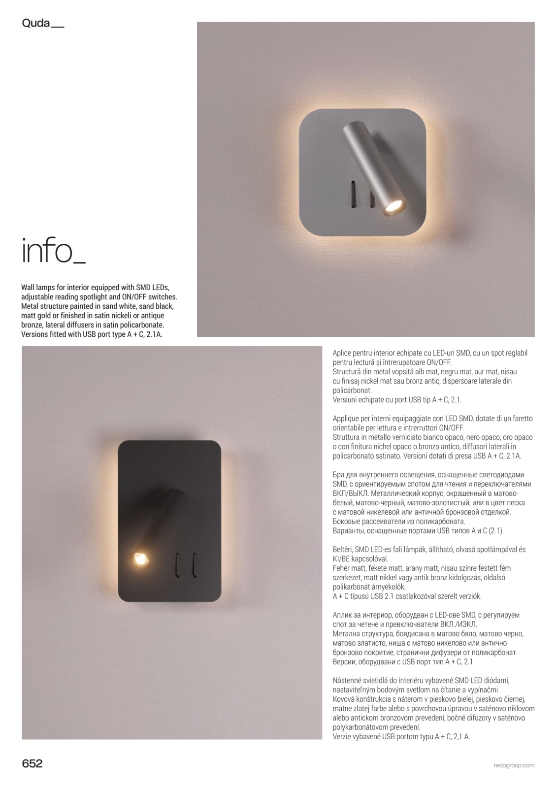 • Redo 01-1491 - LED Nástěnné svítidlo QUDA LED/6W/230V + LED/3W CRI 90 bílá