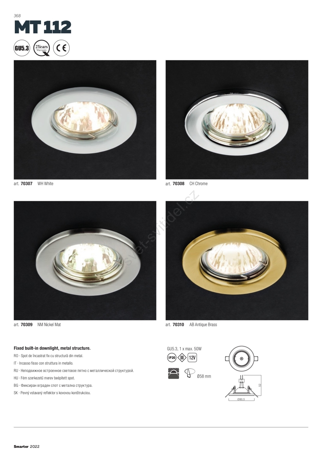 Redo 70308 - Podhledové svítidlo MT 1xGU5,3/50W/12V lesklý chrom charakterizuje pěkný design a funkční provedení. Do svítidla je určena žárovka s paticí GU5,3. Zde si můžete koupit další žárovky za výhodnou cenu. Získáte tak zajímavý doplněk do svého domova.