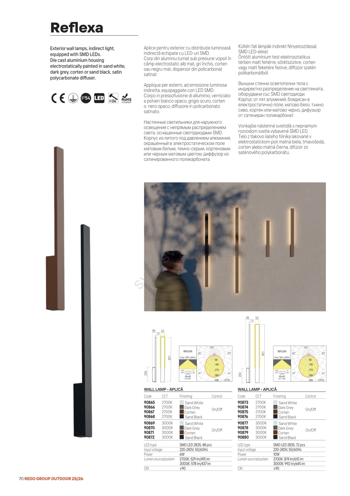 • Redo 90869 - LED Venkovní nástěnné svítidlo REFLEXA LED/6W/230V 3000K 62,1 cm CRI 90 IP54 bílá