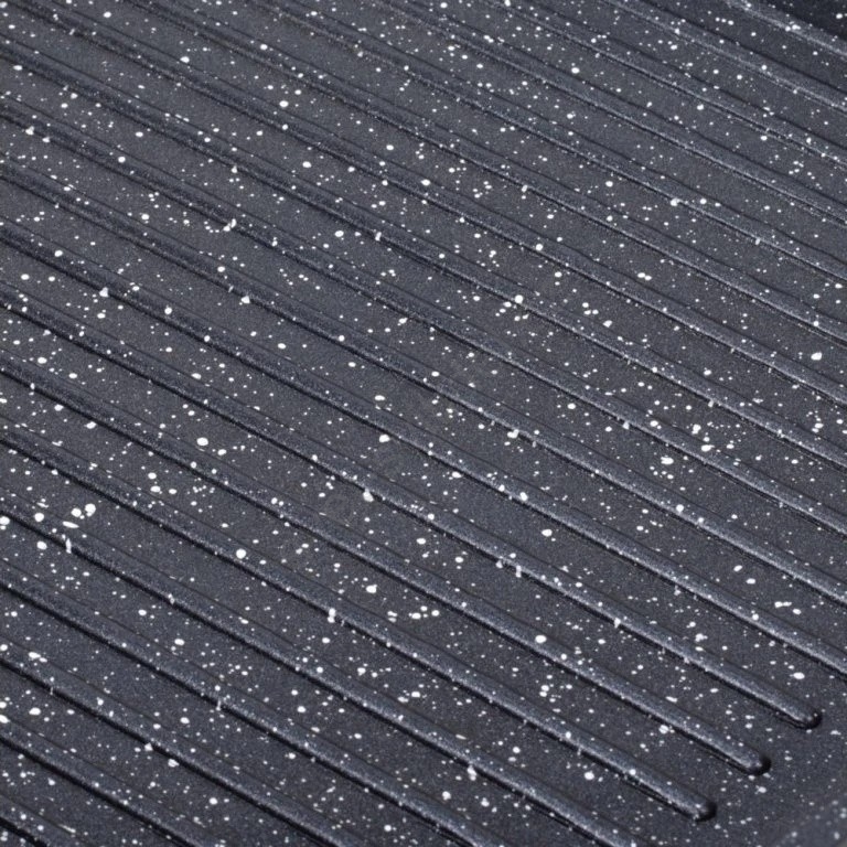 • Žebrovaný povrch nejenže vytváří charakteristické grilovací linky, ale také umožňuje efektivní odtékání přebytečného tuku.