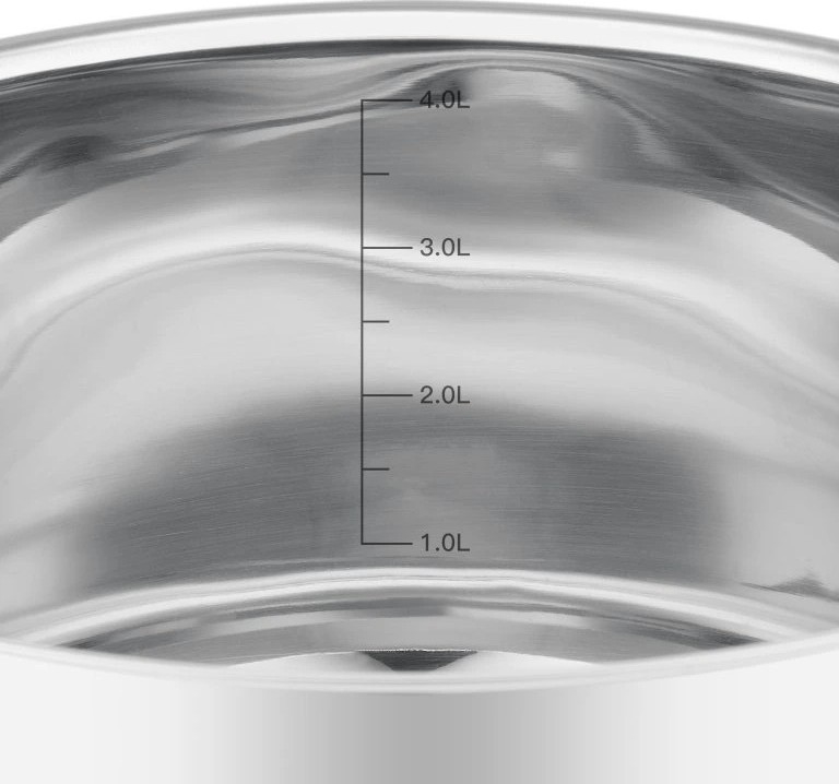• Vnitřní stěny jsou vybaveny praktickou odměrnou stupnicí, která umožňuje přesné dávkování tekutin přímo v hrnci.