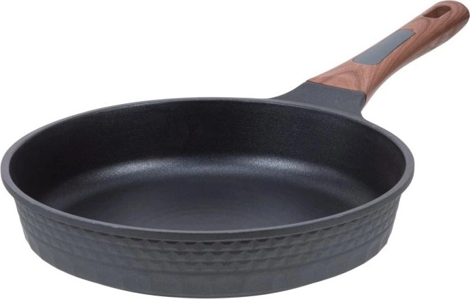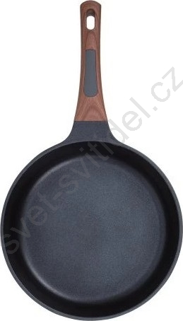 • Ergonomická rukojeť s povrchem Soft-Touch a dekorem dřeva poskytuje pohodlný úchop a jistotu při manipulaci, navíc pánev vypadá hezky.