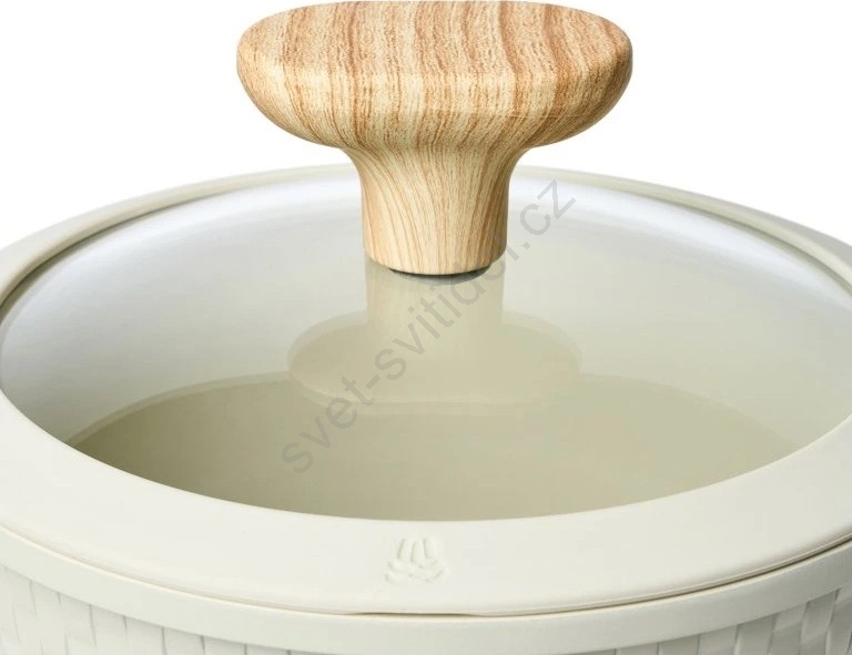 • Disponují ergonomickou rukojetí s protiskluzovou úpravou Soft Touch s dekorem dřeva, která zůstává chladná na dotek. Dno je navíc zesíleno speciálním anti-deformačním diskem, který chrání tvar nádobí i při každodenním používání.