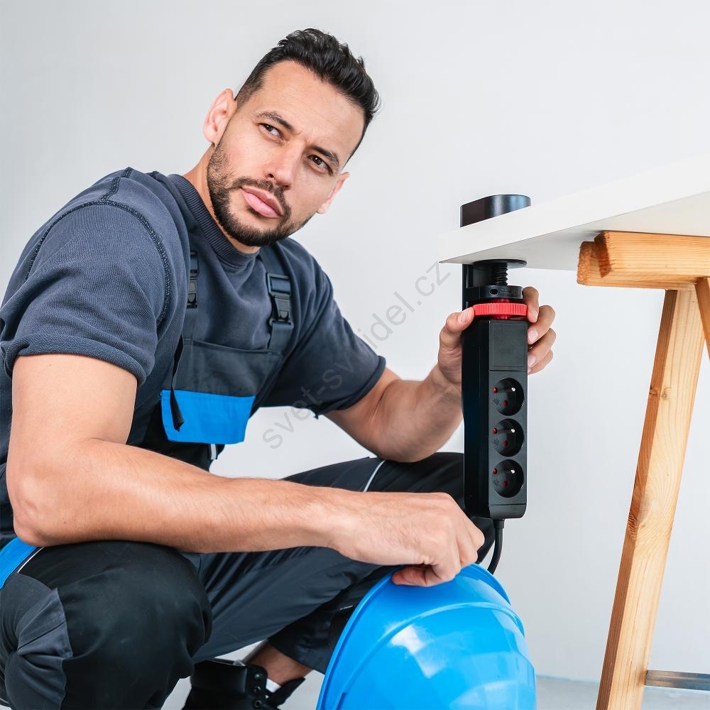 Prodlužovací kabel s uchycením na stůl 3Z Typ E + 2xUSB-A + 1xUSB-C 1,5m černá