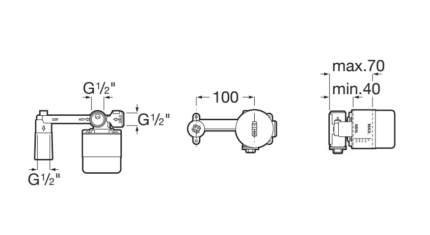 • Podomítkové těleso pro vrchní sadu umyvadlové podomítkové baterie.