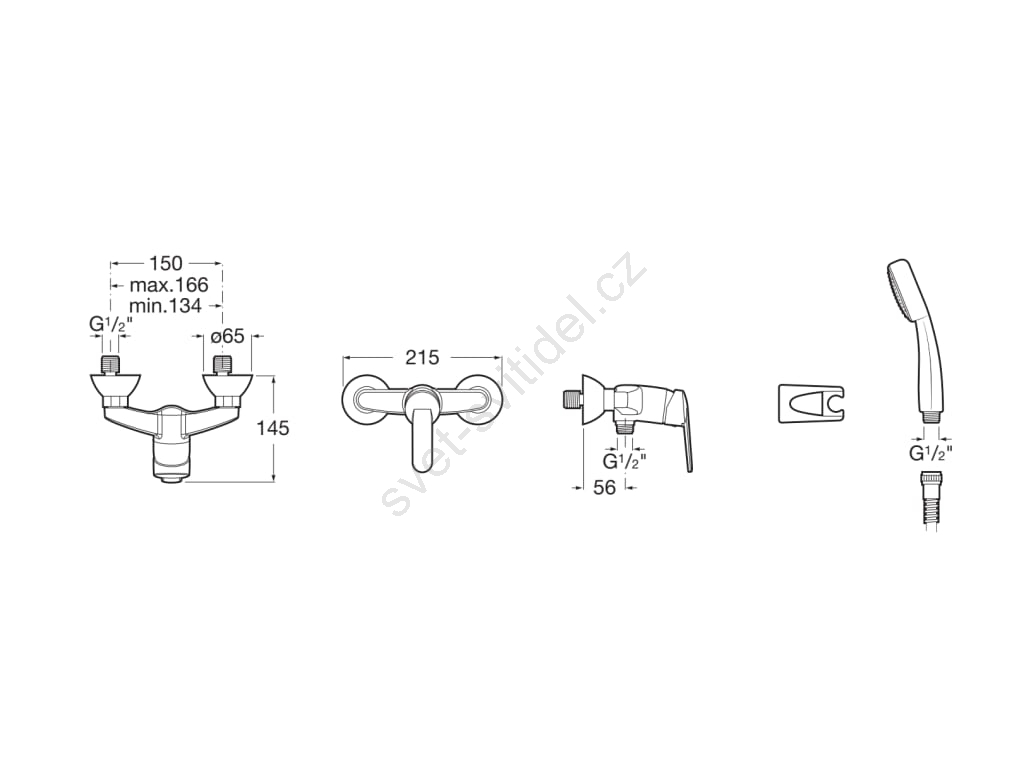 • Balení obsahuje: sprchovou baterii, ruční sprchu, flexibilní hadicí 1,5 m, nástěnný držák.