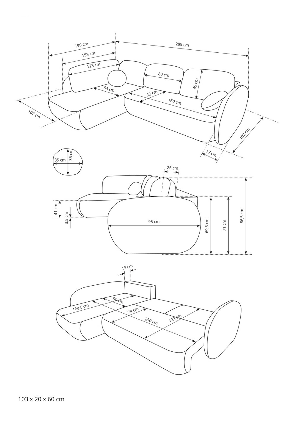 • Box č. 3: 63 x 172 x 40 cm (36,5 kg).