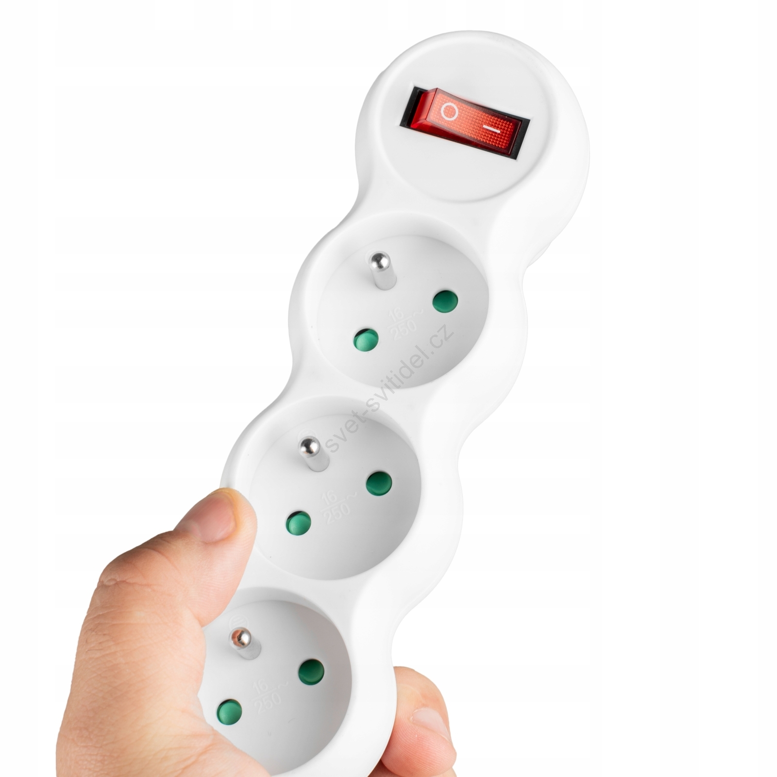 • Síťový rozbočovač se 3 uzemněnými zásuvkami a prodlouženým pouzdrem se základnou.