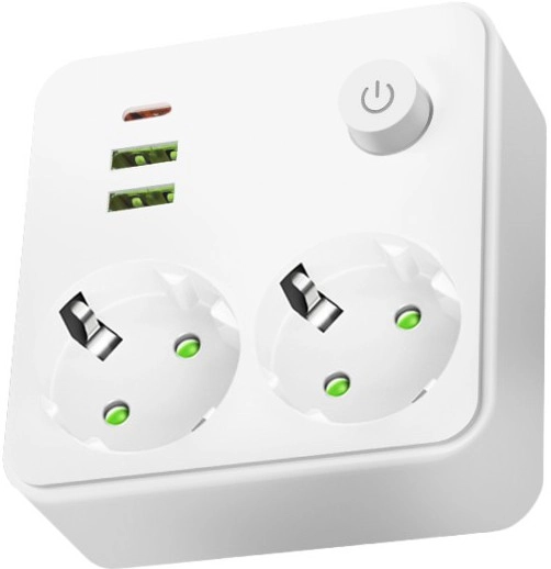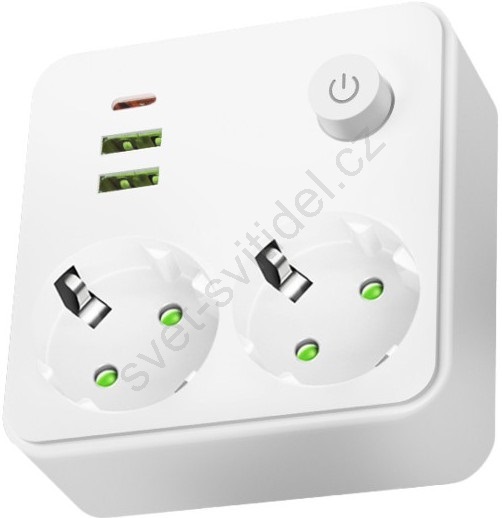 Rozbočovací zásuvka s vypínačem LINEA 2x230V + 3xUSB A/C SCHUKO bílá