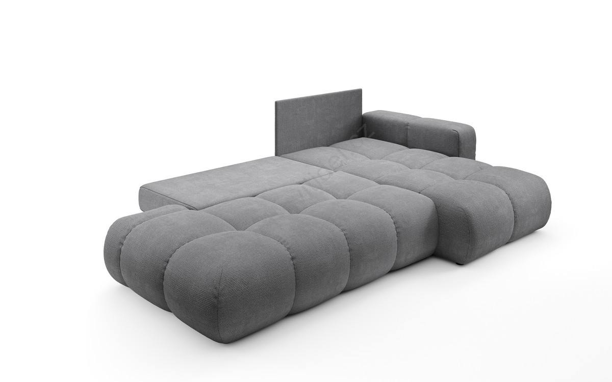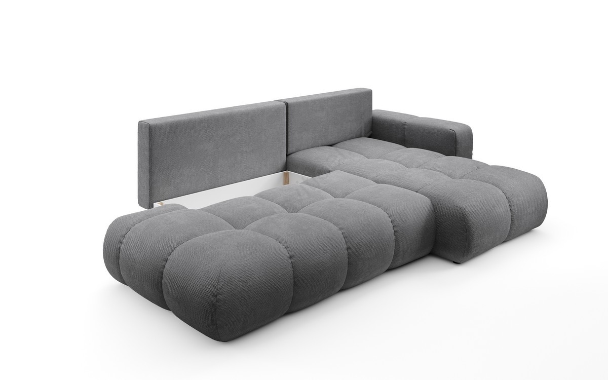 • Rozkládací rohová čalouněná sedací souprava s úložným prostorem do L ALMADA pravá šedá