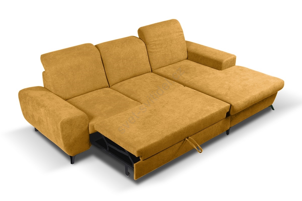 • Rozkládací rohová čalouněná sedací souprava s úložným prostorem do L ALTA pravá žlutá