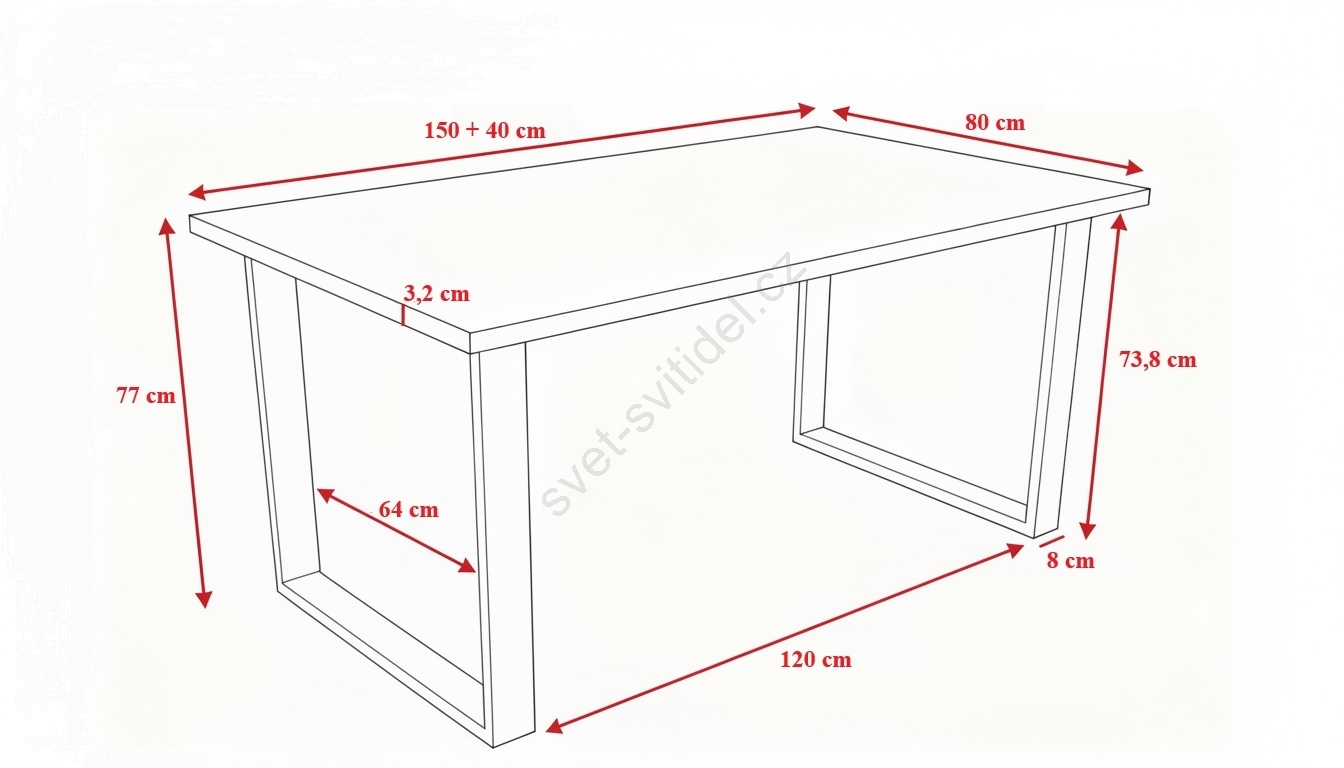 • Tloušťka desky stolu: 3,2 cm.