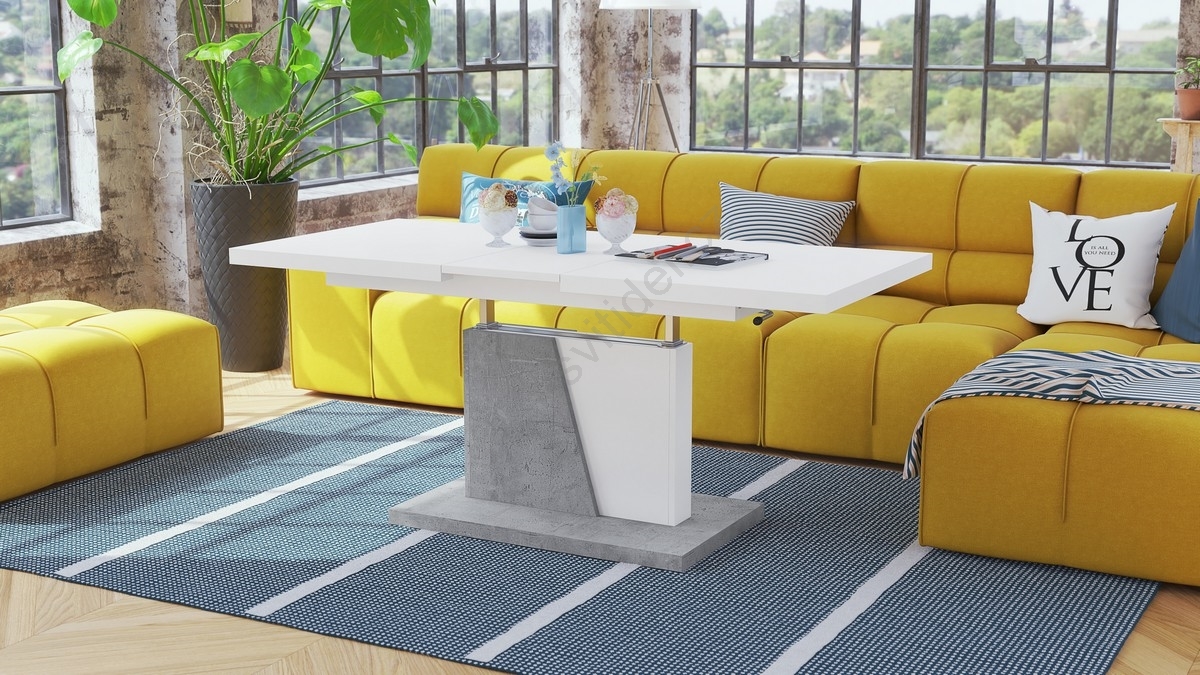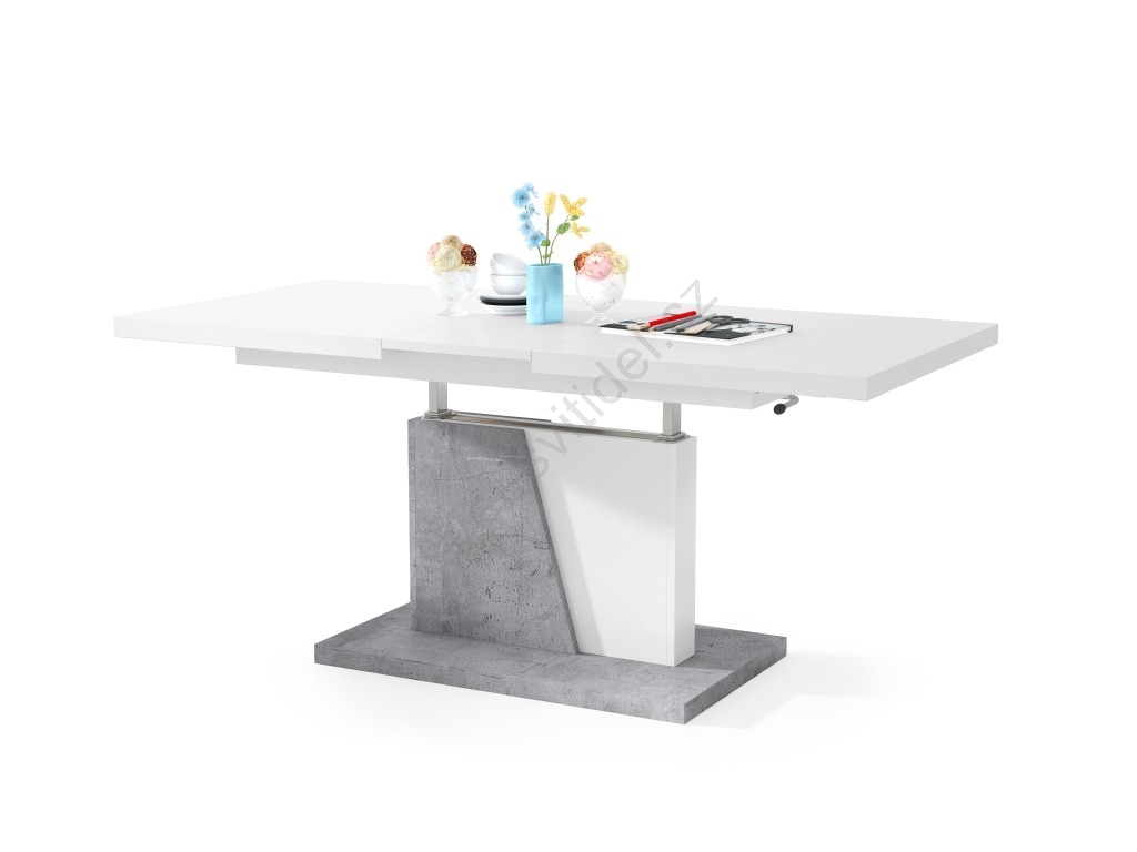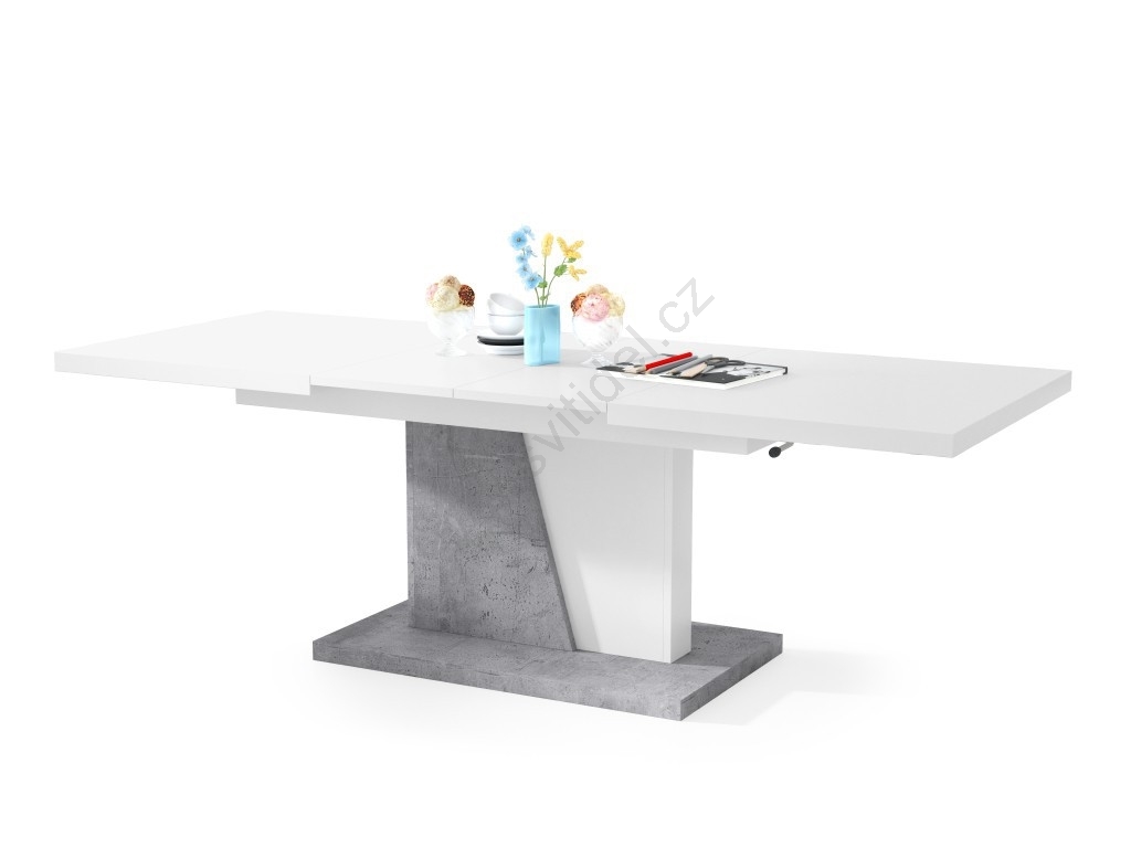 Rozkládací jídelní stůl se zvedací deskou NINO 120/150/180x70 cm bílá/šedá beton