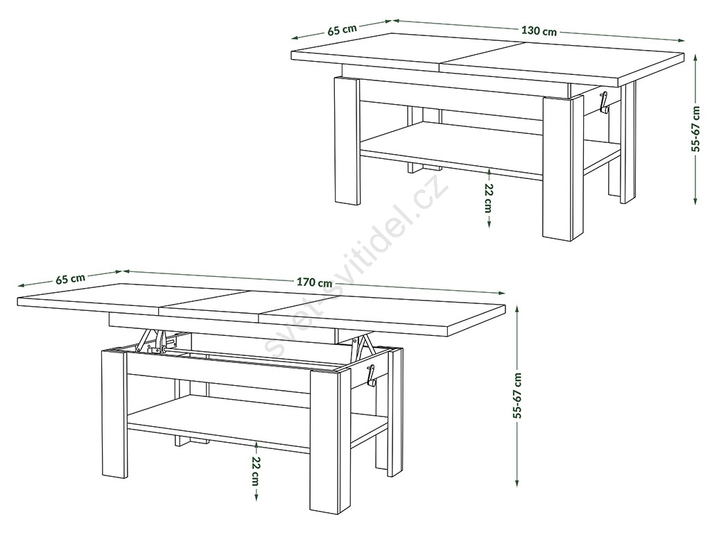 • Rozměr rozloženého stolu: 170x65 cm.