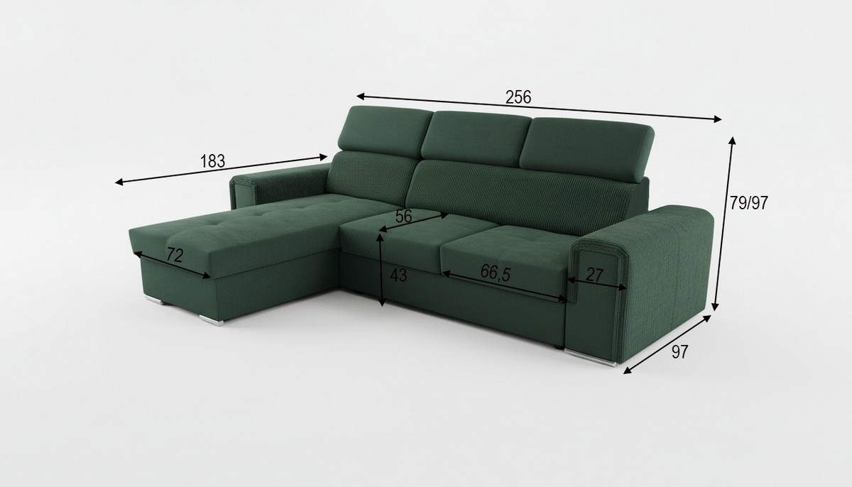 • Univerzální rohová rozkládací sedací souprava do L s úložným prostorem SALVADA zelená