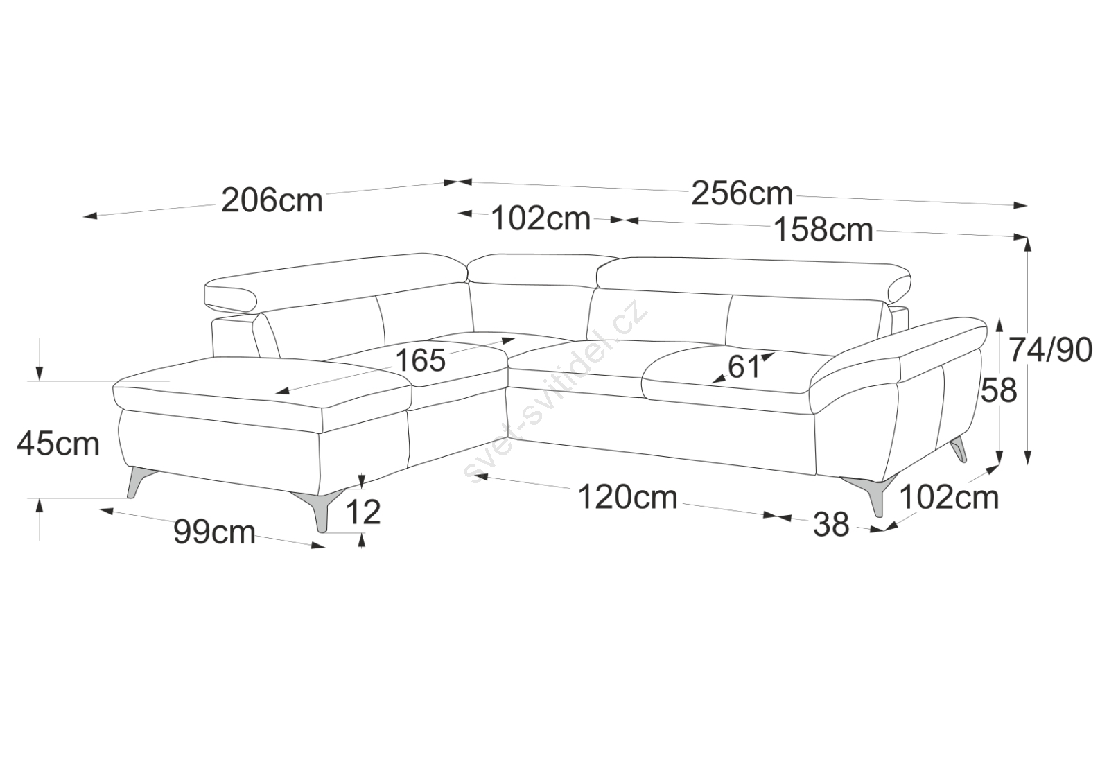 • S výškou sedáku 45 cm, výškou opěradla 74 až 90 cm a hloubkou sedáku 61 cm zajišťuje pohodlné a ergonomické sezení.