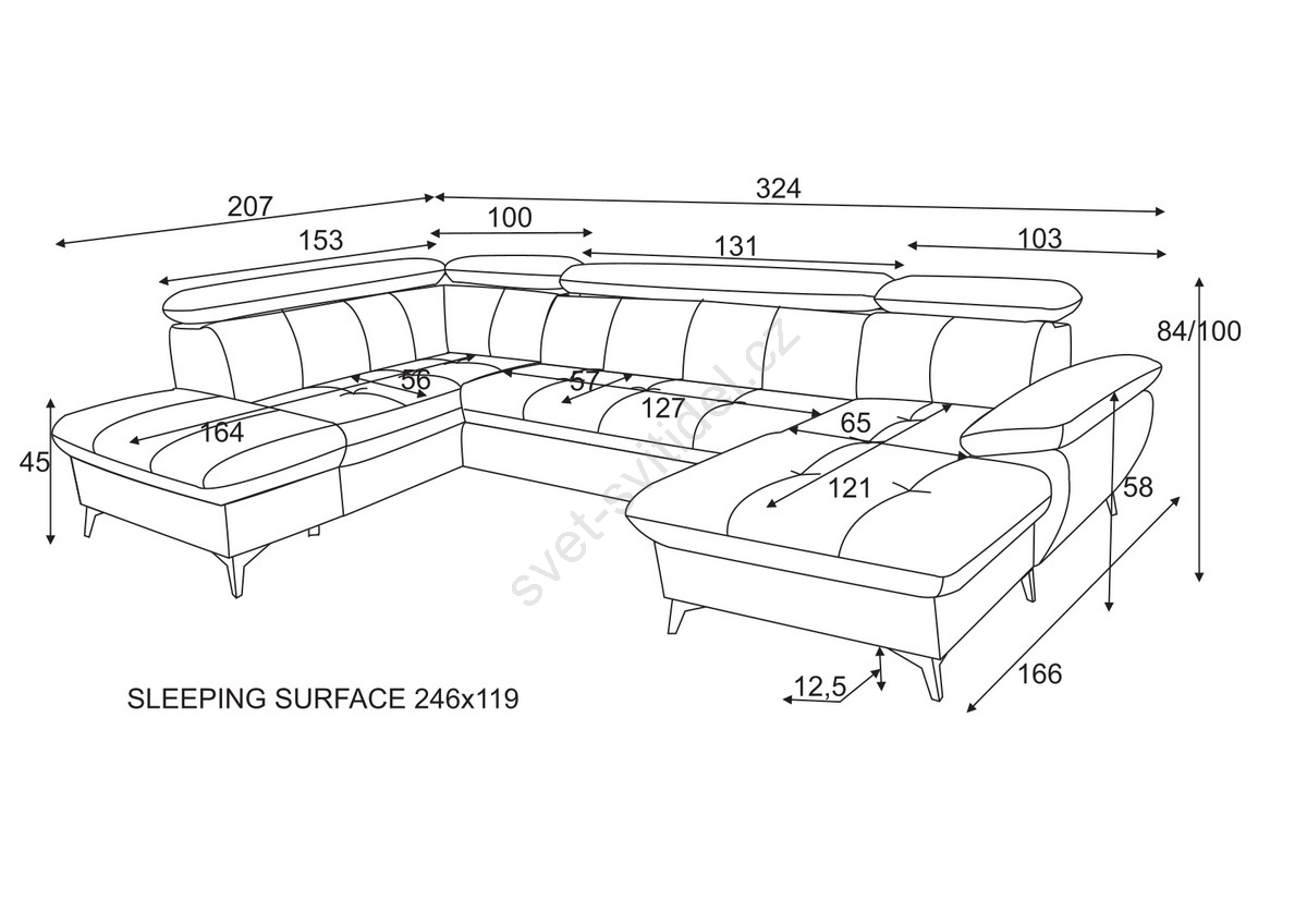 • Sedačka je navržena s opěradlem ve výšce 100 cm a nabízí tak vynikající oporu pro záda a hlavu.
