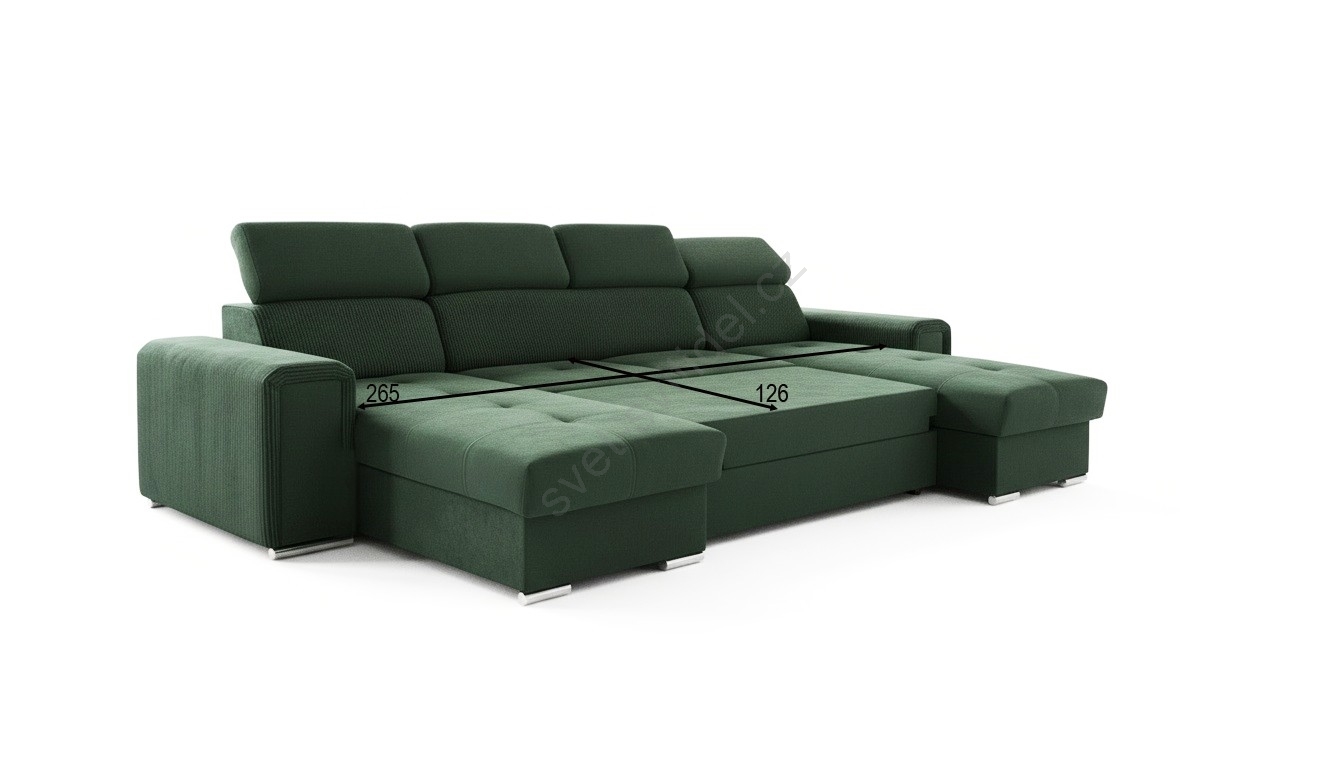 • Rozkládací sedací souprava s univerzálním rohem do U s úložným prostorem SALVADA zelená