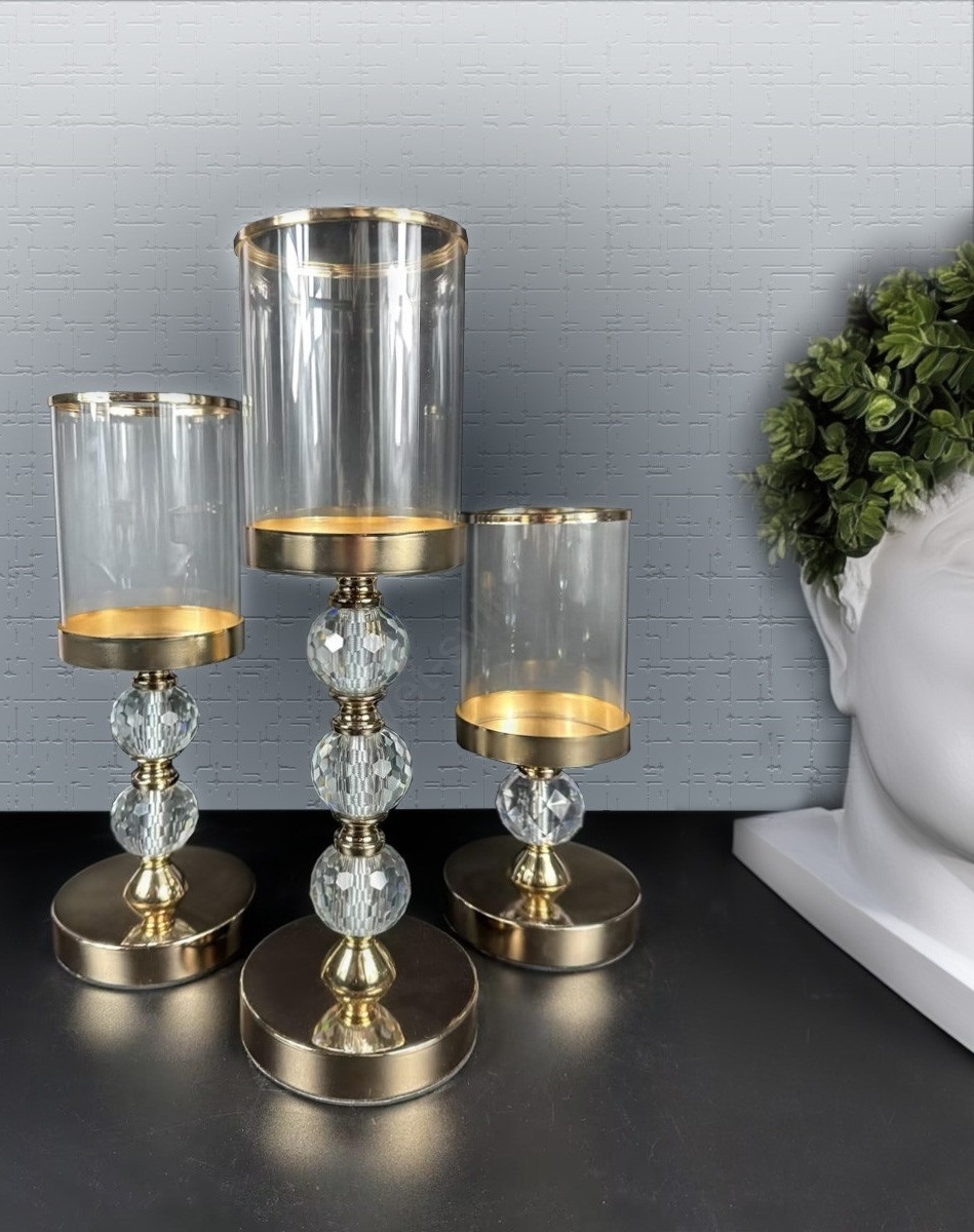 • Elegantní sada tří svícnů ve zlaté barvě.