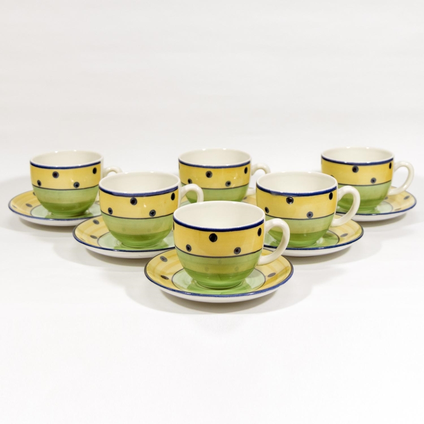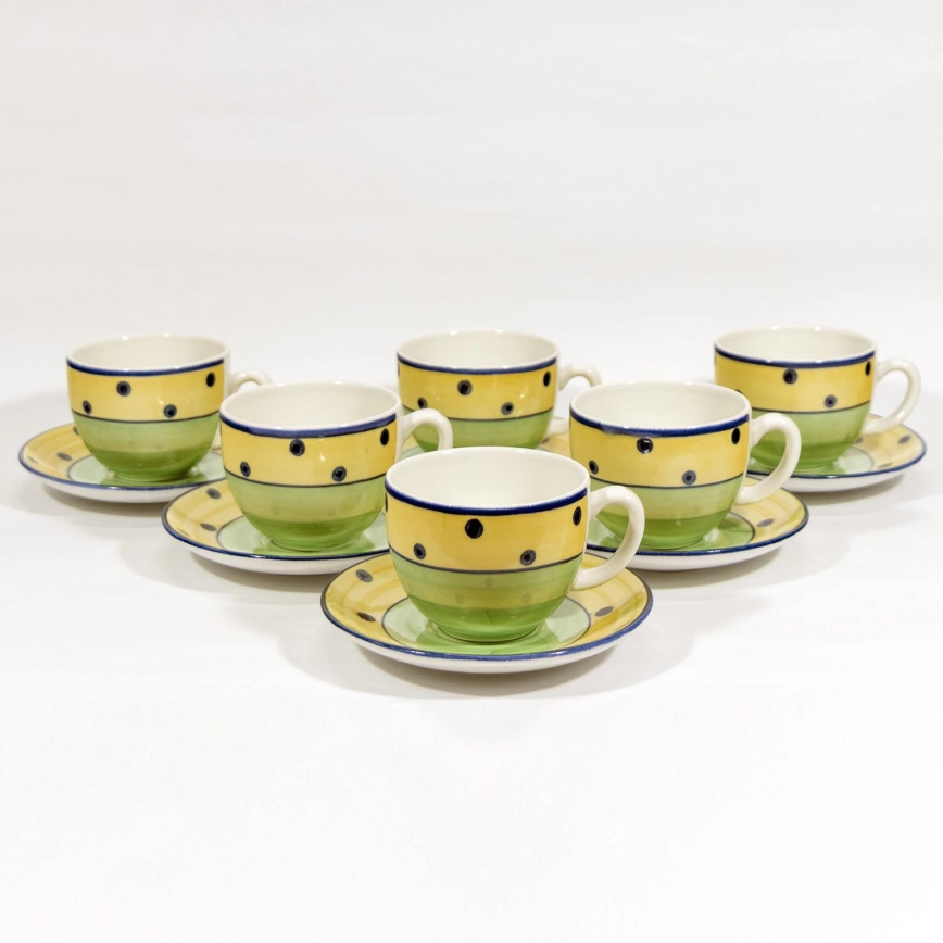Kávová sada 6x keramický šálek s podšálkem zelená žlutá