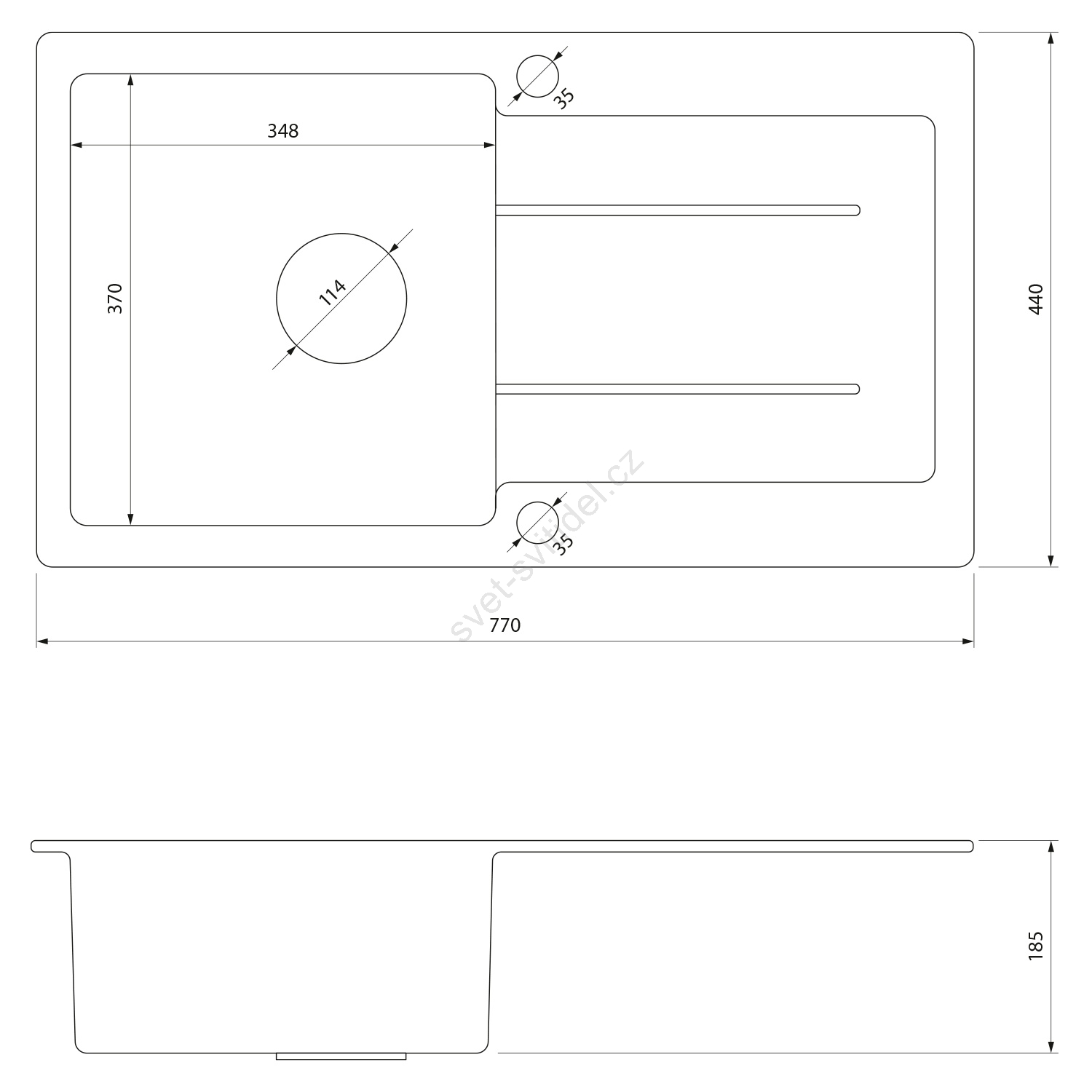 • Součástí balení je výpust a sifon s odbočkou na myčku nebo pračku.