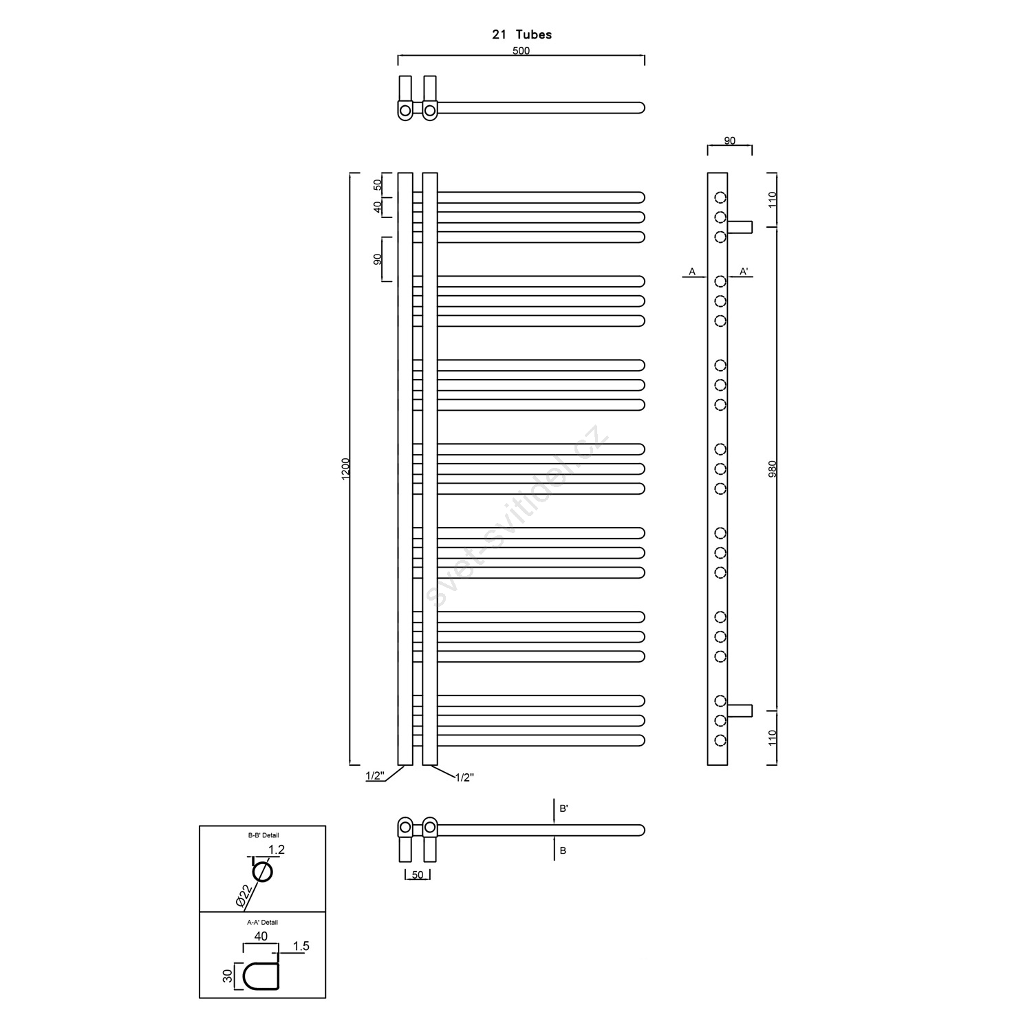 Sapho - Koupelnový radiátor DORLION 400W/230V 50x120 cm matná černá