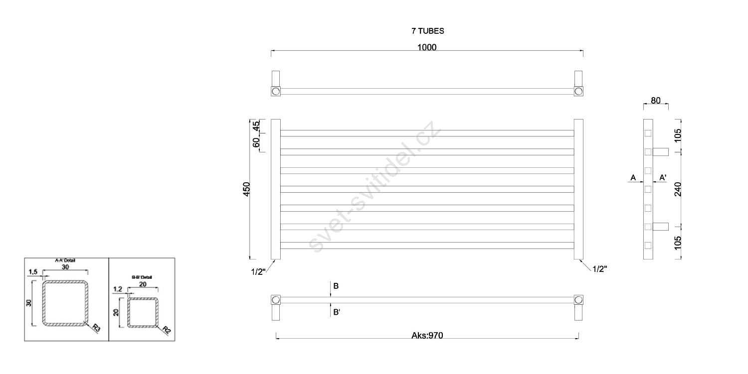 Sapho - Koupelnový radiátor METRO 45x100 cm lesklý chrom