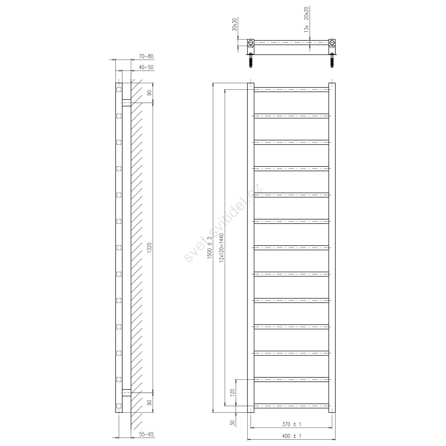 Sapho - Koupelnový radiátor METRO LIGHT 323W/230V 40x150 cm lesklý chrom